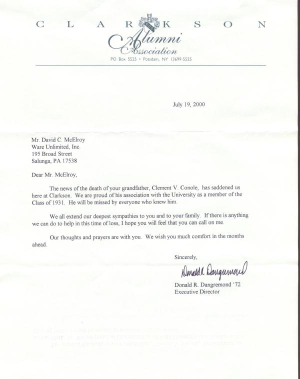 Clarkson letter of condolence